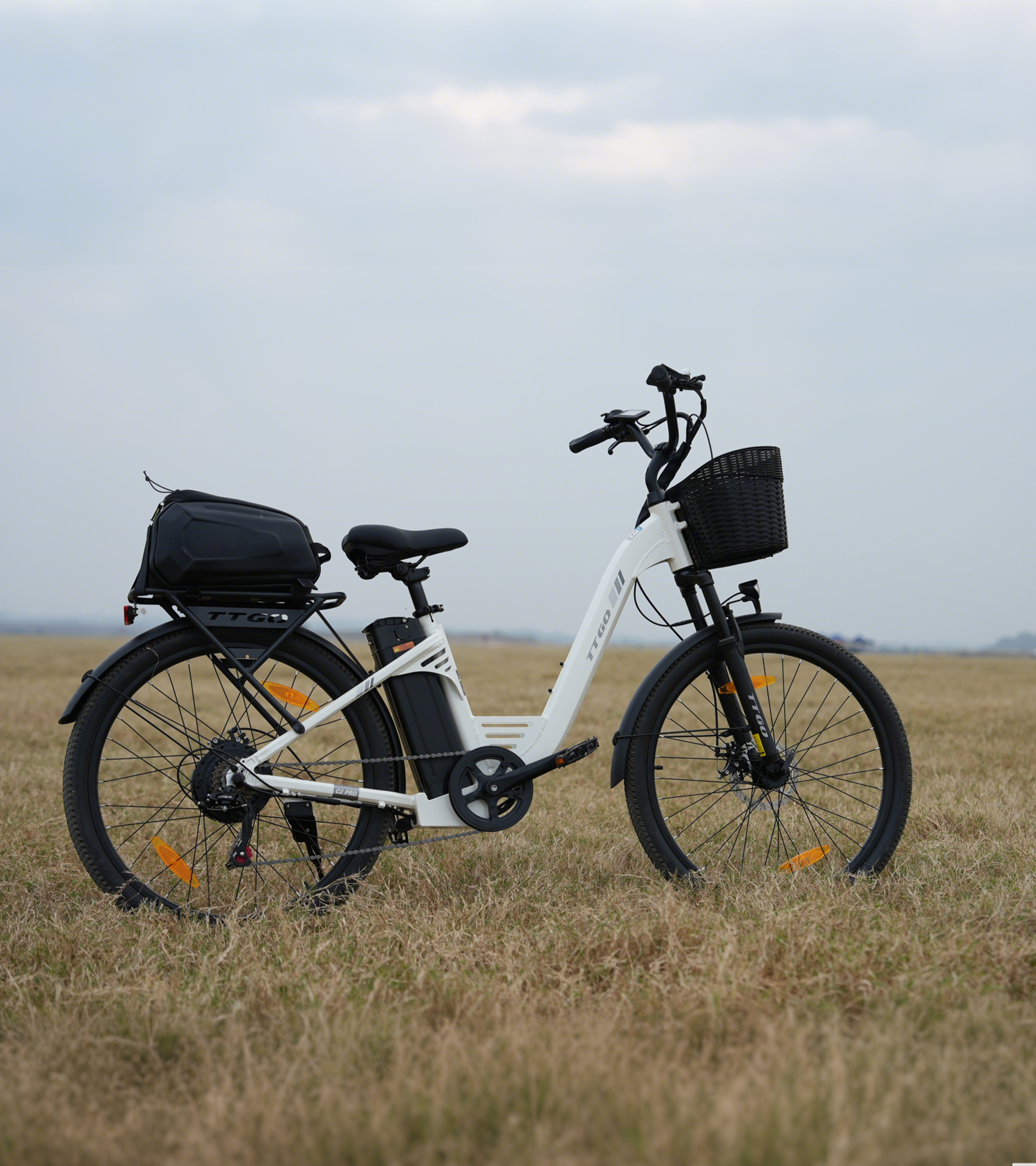 A perfect blend of elegance and practicality, the TTGO C2 PRO electric bicycle features front and rear racks, a comfortable seat, all-terrain tires, and responsive disc brakes, providing powerful performance and comprehensive safety. It's the ideal companion for commuting, shopping, or urban exploration.